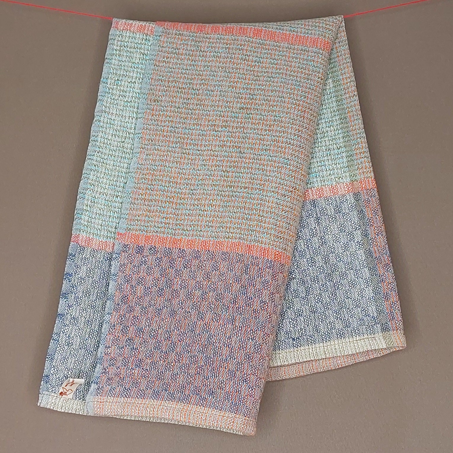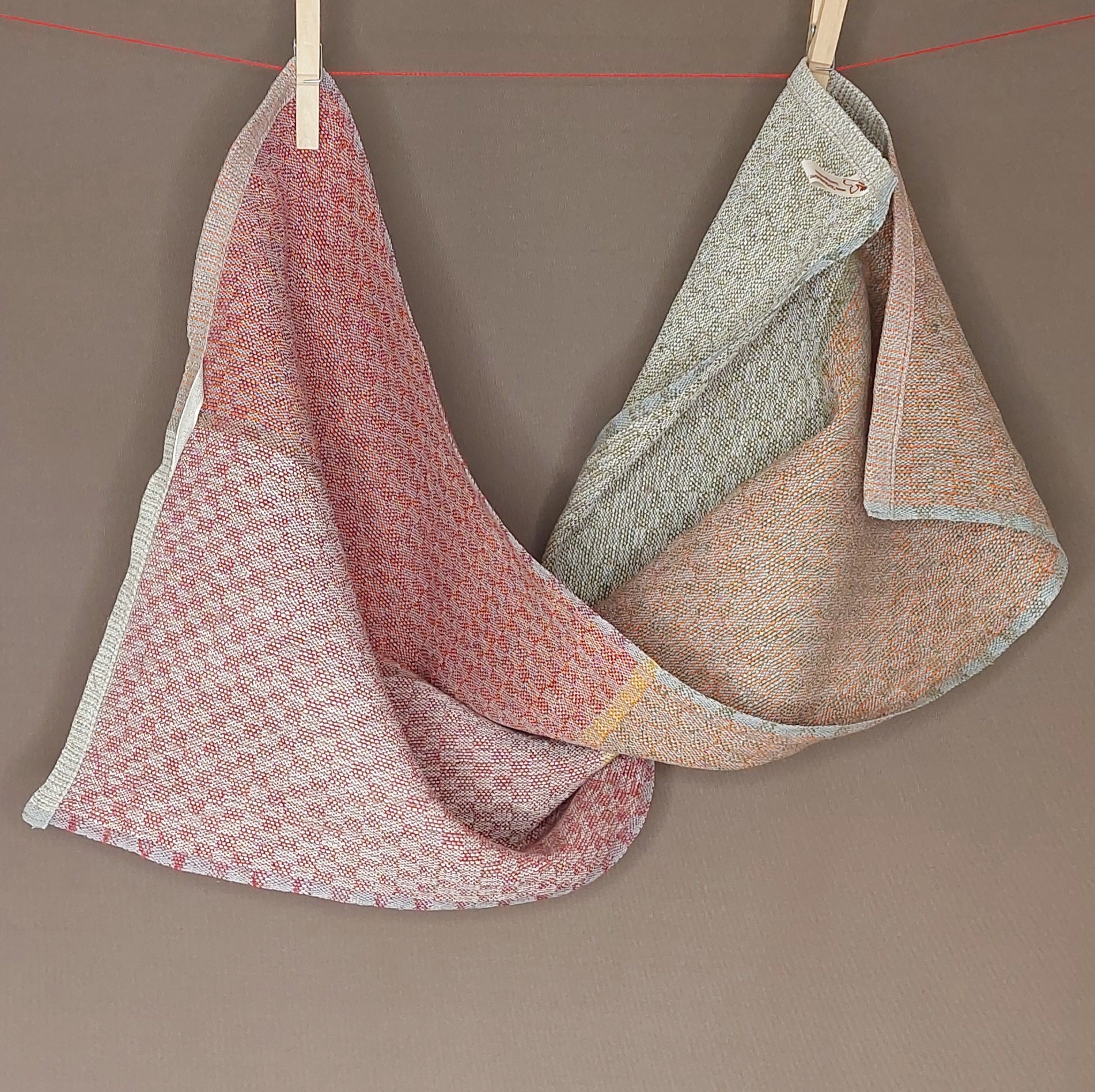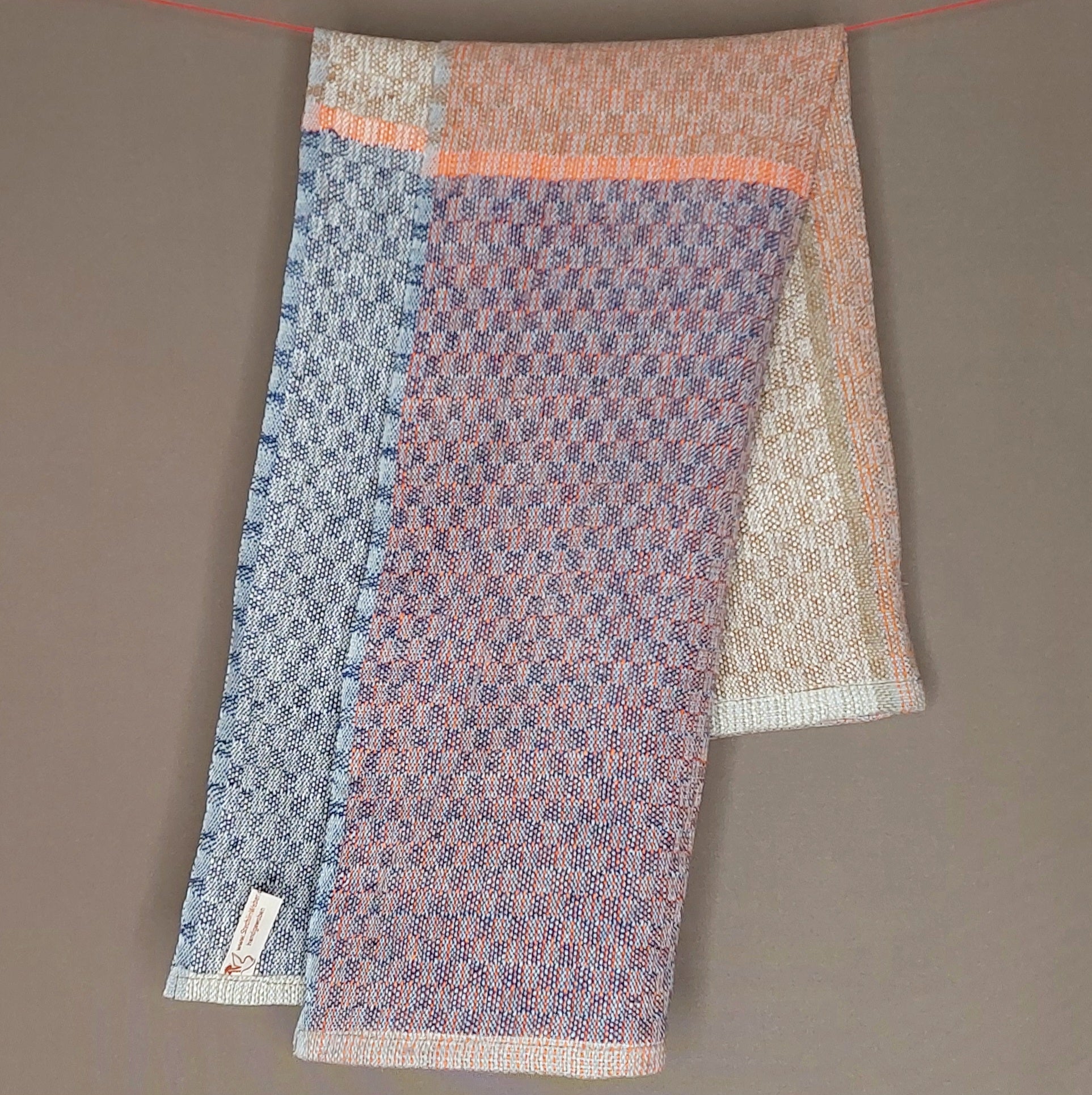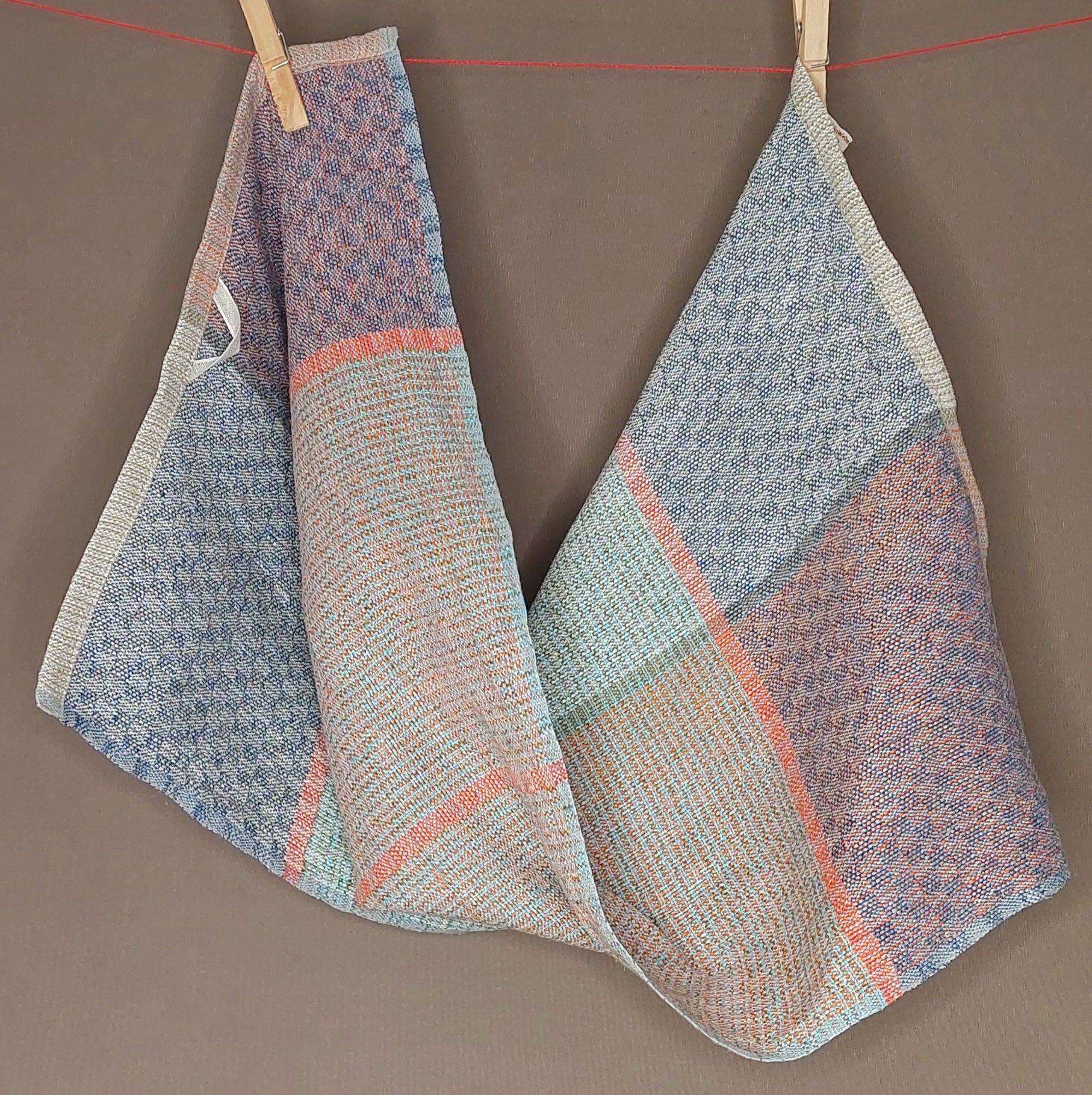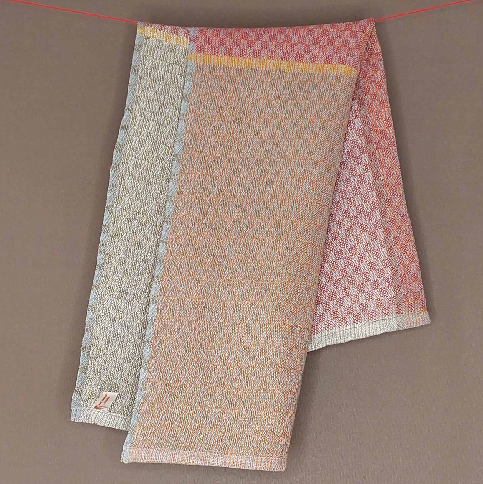 Leichtes, mehrfarbiges Handtuch aus Leinen in mehreren Varianten, saugfähig und schnelltrocknend. Das robuste Gewebe ist glatt und noch etwas steif, wird aber durch Benutzung weicher.