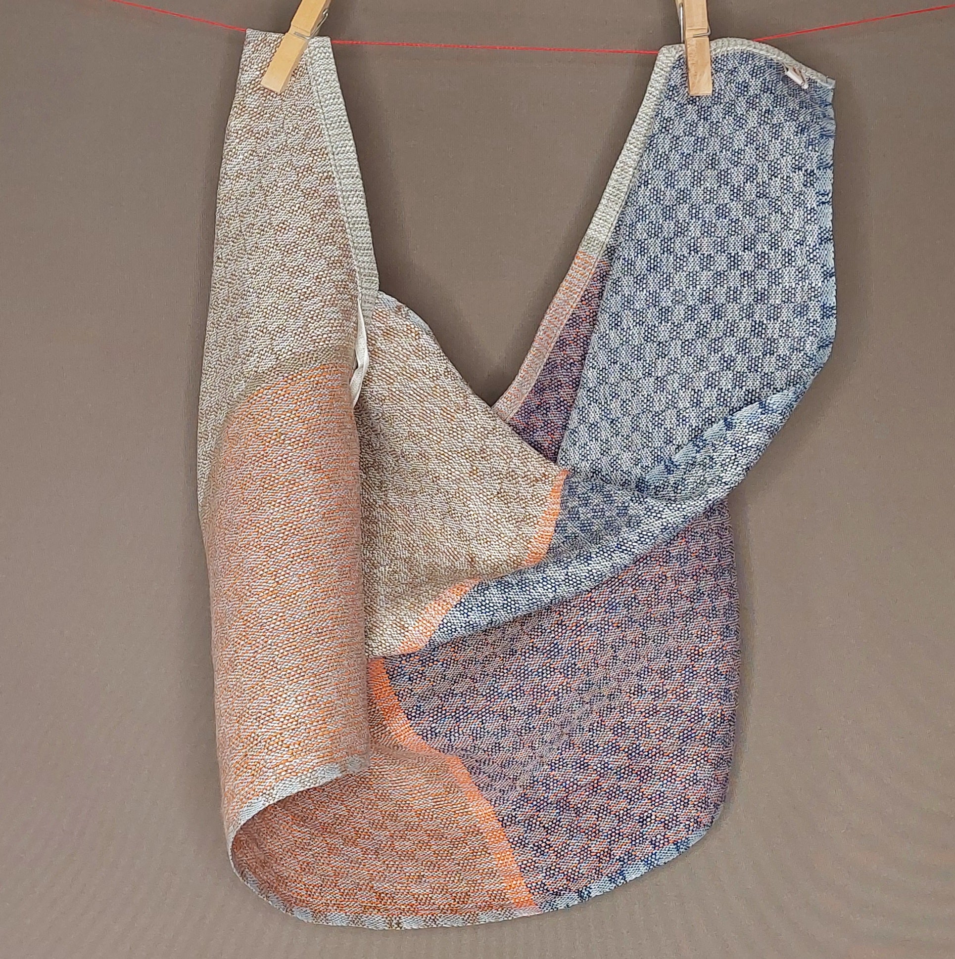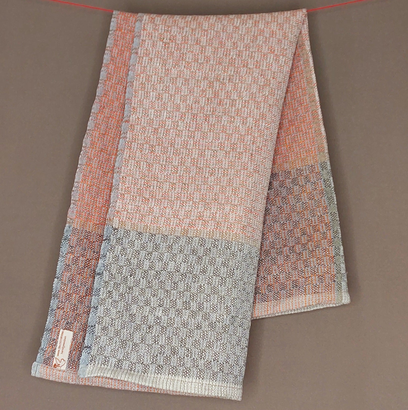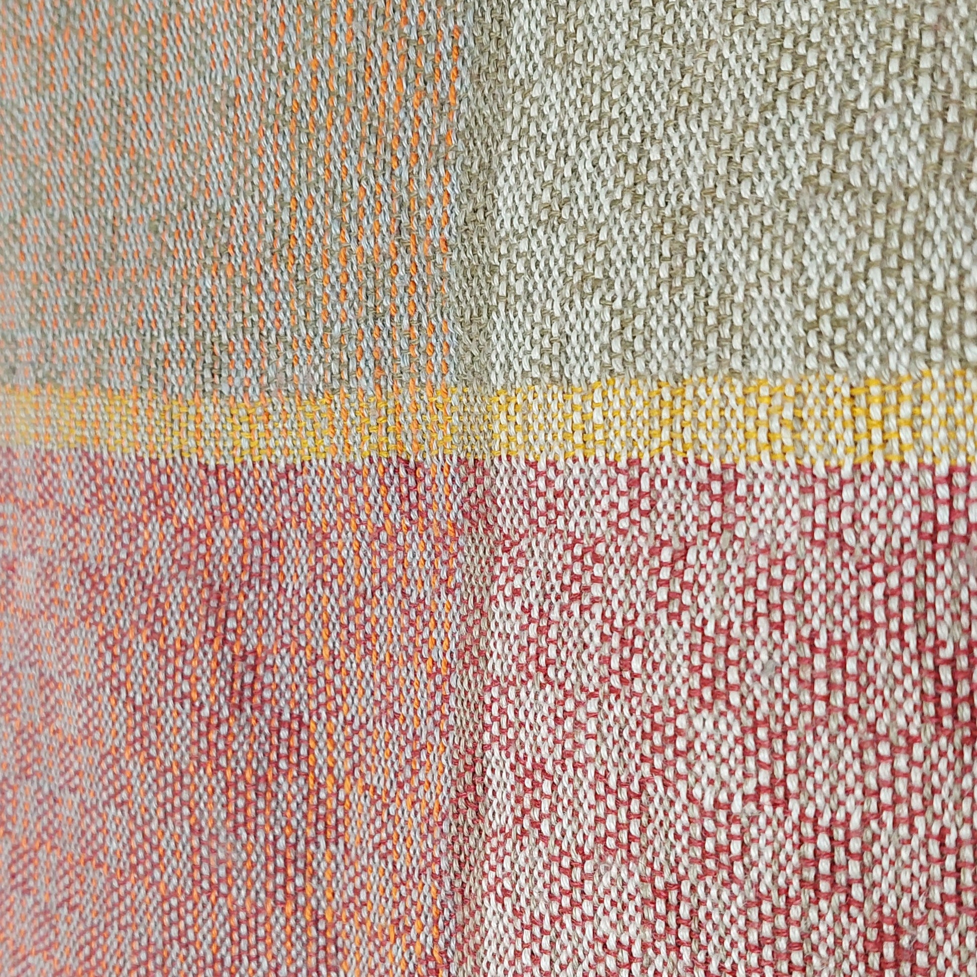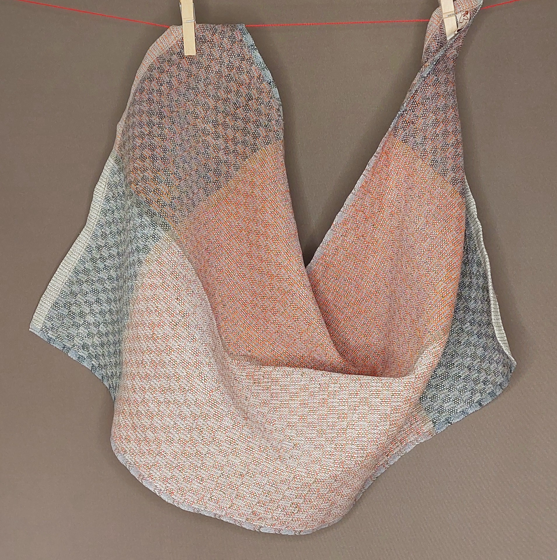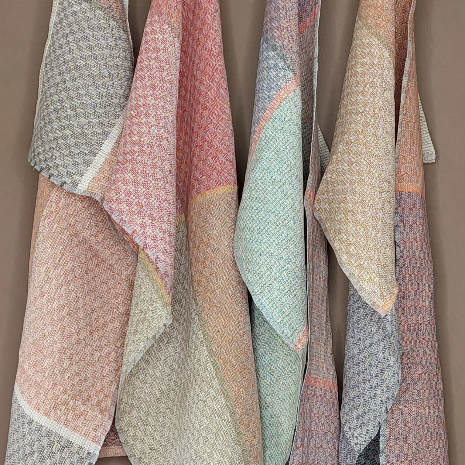 Leichtes, mehrfarbiges Handtuch aus Leinen in mehreren Varianten, saugfähig und schnelltrocknend. Das robuste Gewebe ist glatt und noch etwas steif, wird aber durch Benutzung weicher.